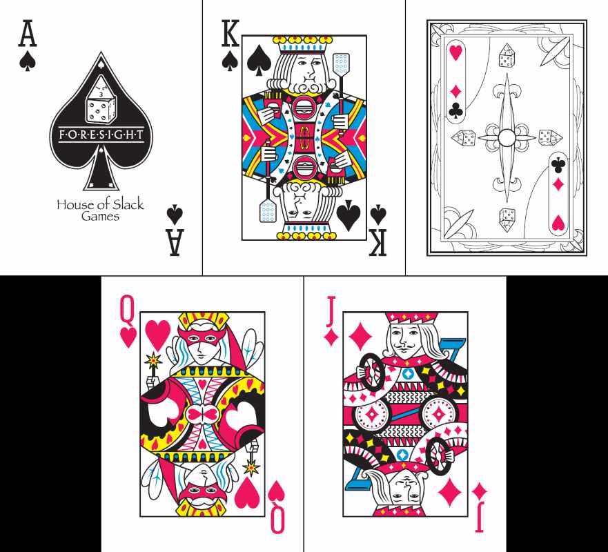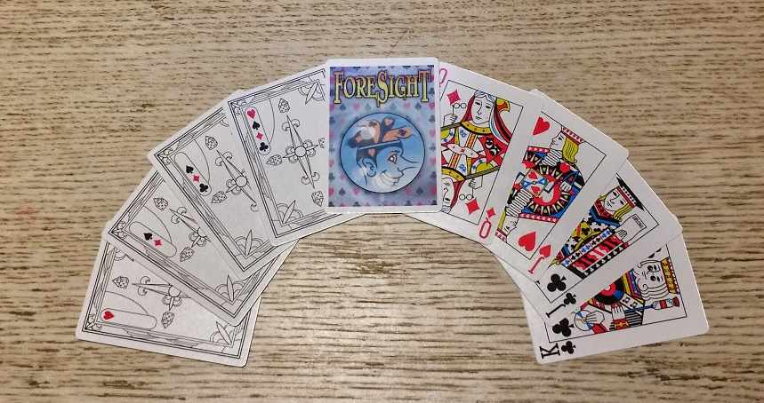 A Foresight deck is a unique deck of poker cards with suits on the back. The number of suits on the back depends on the strength of the card: